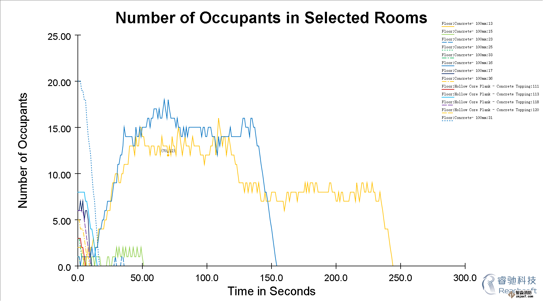 -除了3D模擬視圖,Pathfinder還提供了2D時間關(guān)系曲線圖的CSV文件和記錄樓層疏散時間和出入口流通率的文本文件。